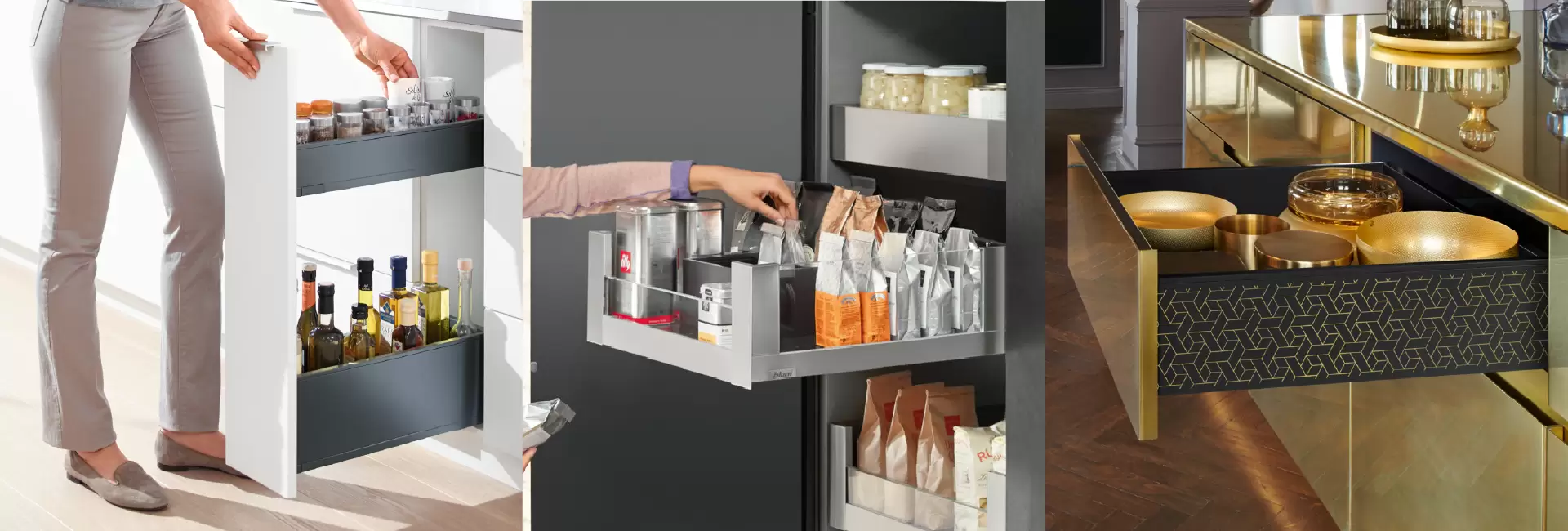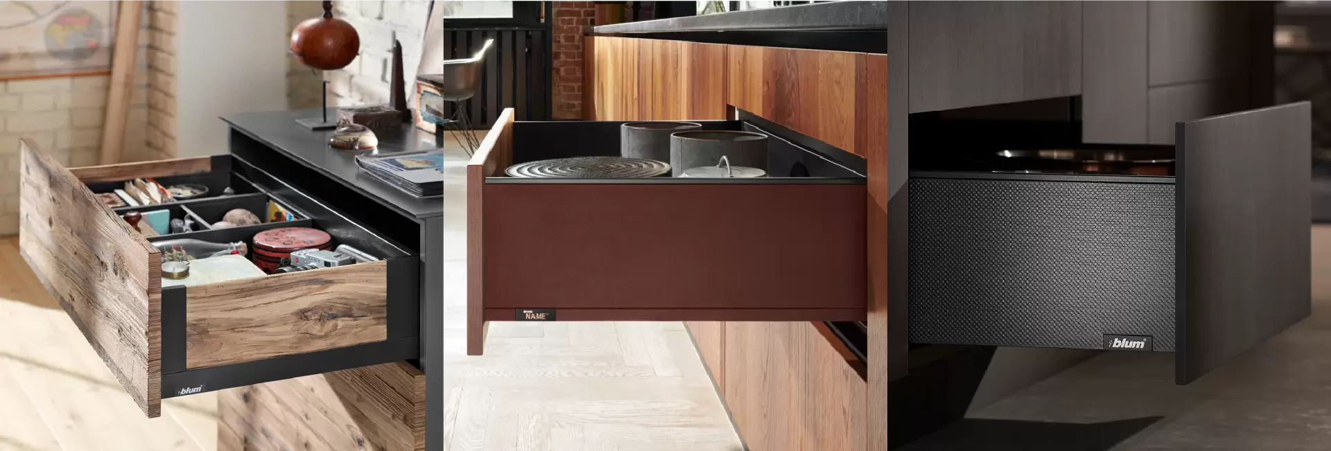 No solo se trata de obtener un cajón vistoso y llamativo que no garantiza un uso correcto sin afectar la vida útil de tus muebles. Los cajones Legrabox de la empresa austriaca, Blum, son tan versátiles, que pueden ser aplicados en cualquier área o mueble que requieras, con una resistencia y durabilidad superior, gracias a su fabricación con laterales metálicos de alta calidad, y un sistema de guías oculto que resisten altas cargas y constante uso.
