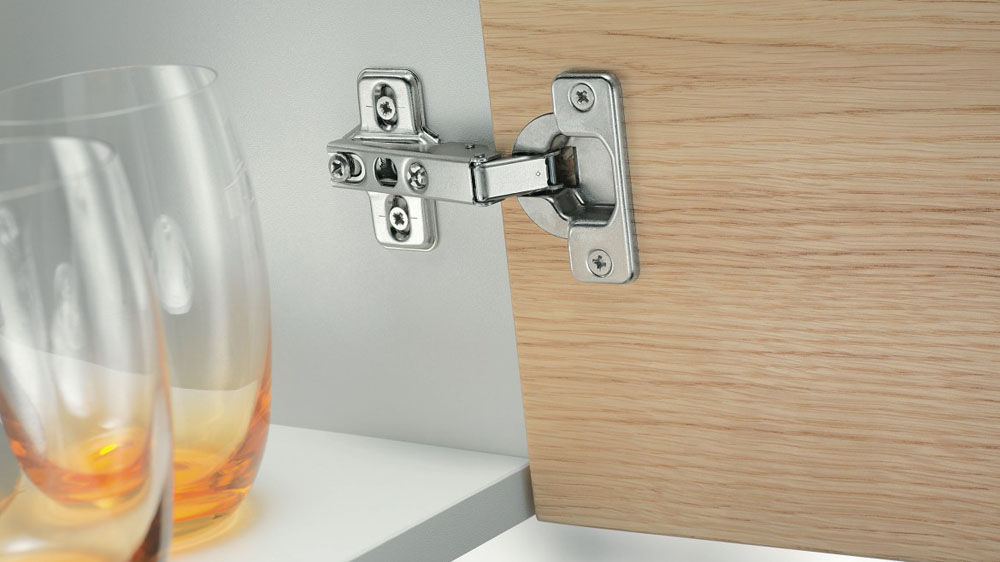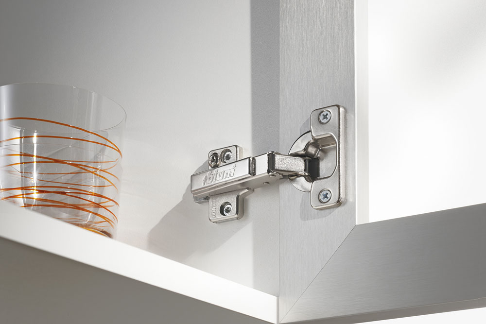 La corta distancia de deslizamiento de las bisagras para puertas en muebles Modul, permite un sencillo montaje del frontal en el cuerpo, y mediante la posibilidad de ajuste en 3 dimensiones se obtiene un juego de puerta preciso y uniforme. Estas bisagras están disponibles con un grado de apertura de 100º y en color Níquel. El seguro antidesenganche integrado de nuestra bisagra para puertas Modul, asegura que mientras tanto la puerta permanezca fija en su lugar.