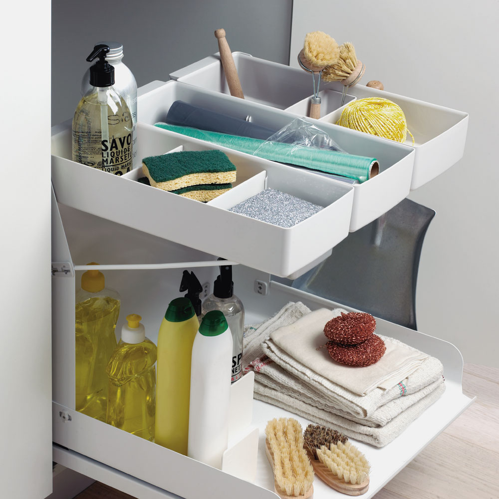 Kitchen Tower, fabricado por Peka System, se destaca por su diseño compacto e inteligente, pensado para concentrar condimentos y utensilios de uso diario en un solo lugar. Este herraje para mueble bajo es ideal para optimizar el espacio y mantener la cocina organizada y funcional.