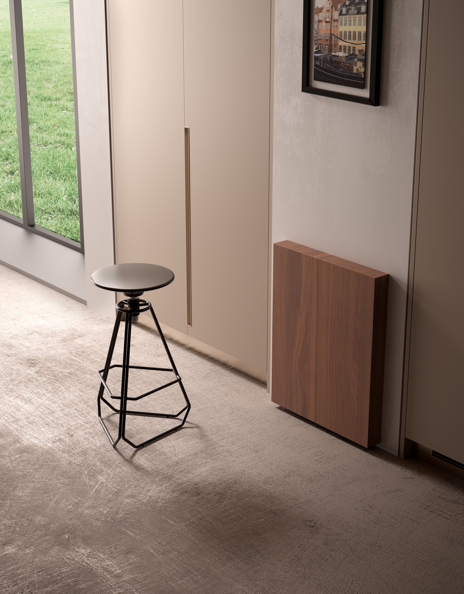 El ancho mínimo del sistema es de 600 mm y el largo de 750 mm. La altura de la pata es graduable entre 840 mm y 860 mm, y soporta hasta 100 kg de peso, lo que lo convierte en una solución resistente y versátil. Puede aplicarse en espacios como la cocina, la oficina en casa (home office) o el comedor. También es posible adaptarlo al costado de un mueble o directamente sobre la pared.