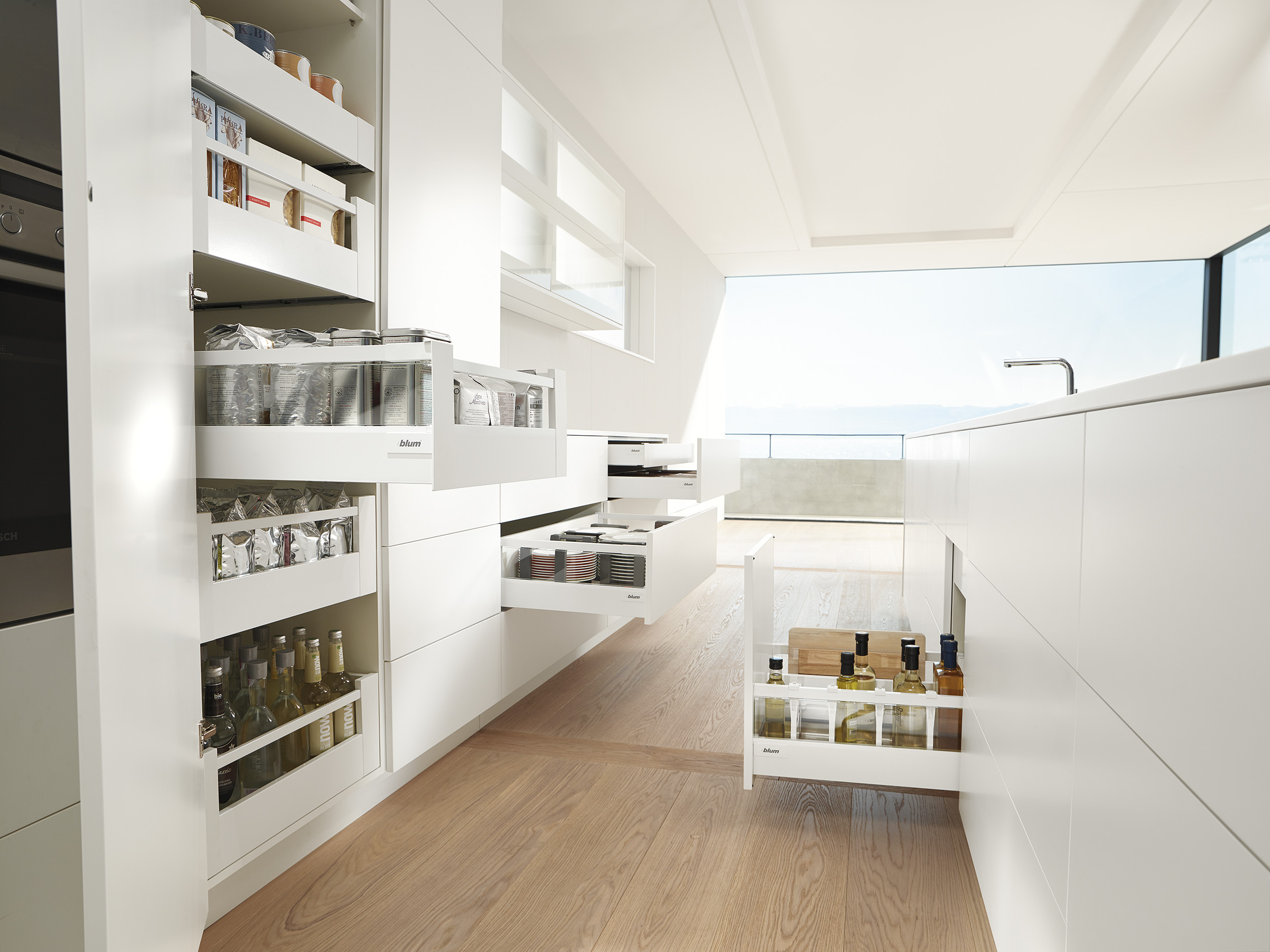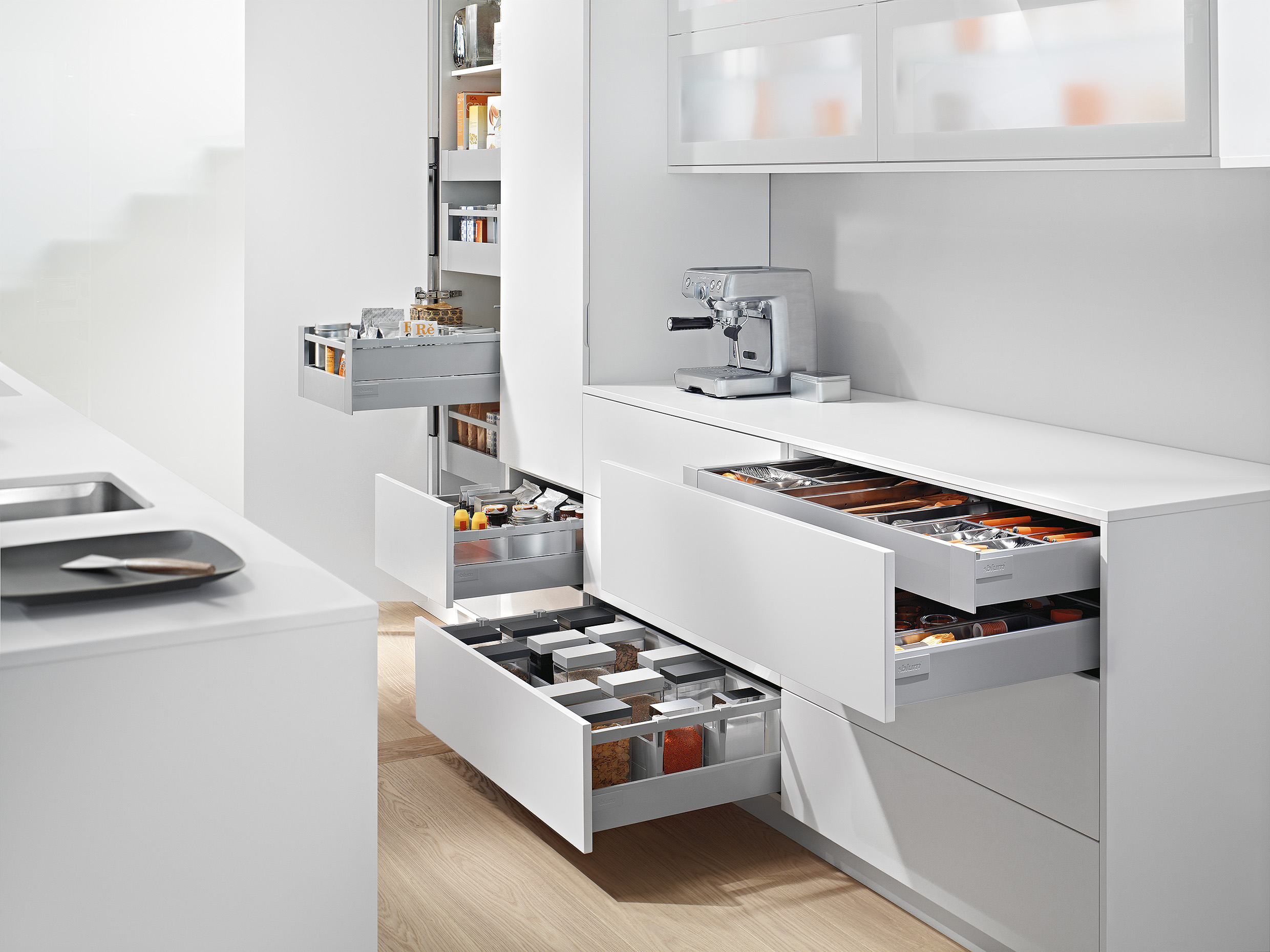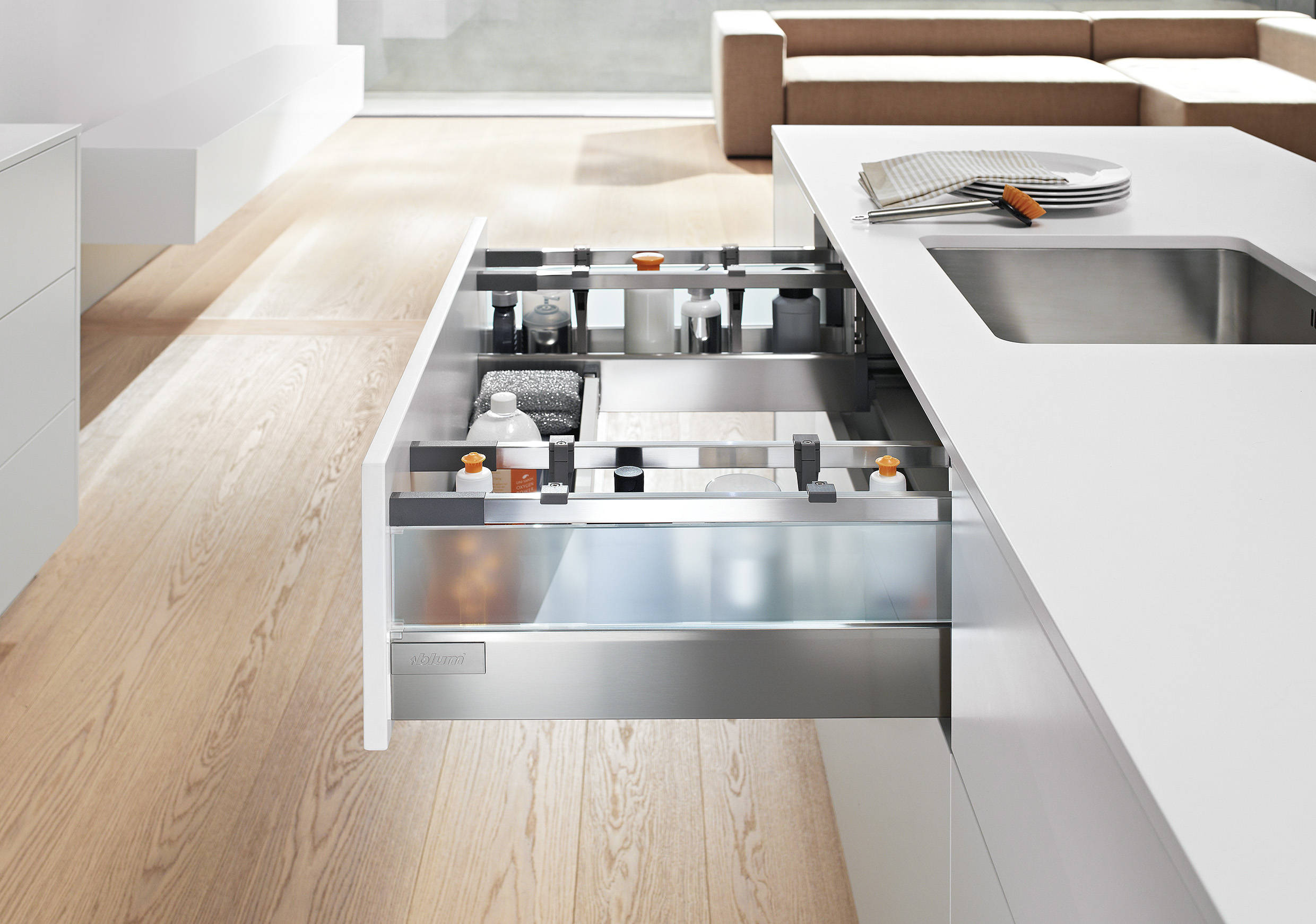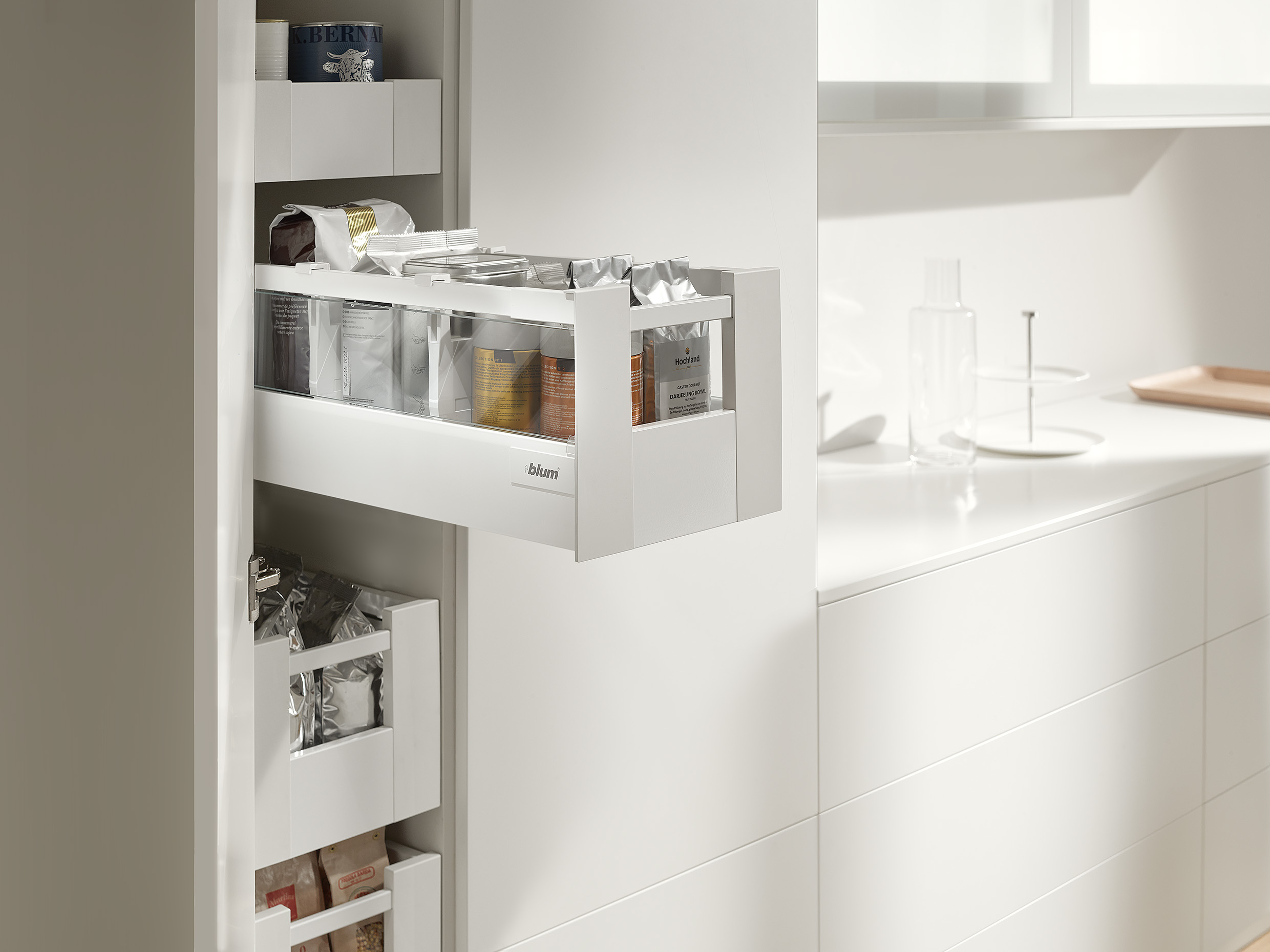El cajón metálico Antaro es un sistema de la línea Tandembox de Blum, de alta calidad en su funcionamiento y con formas claras y rectangulares en su diseño. Todos sus componentes combinan a tono entre sí, acentuando el diseño del producto. Los cajones se pueden montar y desmontar sin esfuerzo.