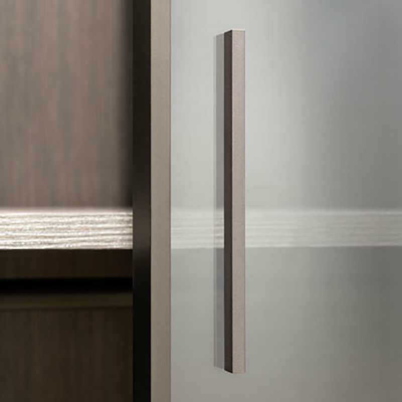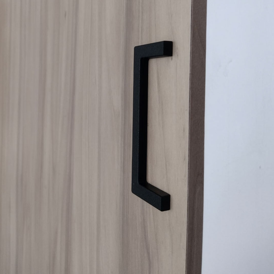 Manija metálica para puertas de gabinetes y frentes de cajones, que se adhiere o atornilla sobre la superficie.