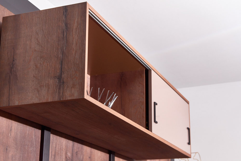 El sistema de puertas corredizas para muebles Living Top® by Terno Scorrevoli es un herraje sin guía inferior, lo que proporciona un diseño limpio y elegante. Producto ideal para muebles de oficina, sala, cuarto, cocina, etc.