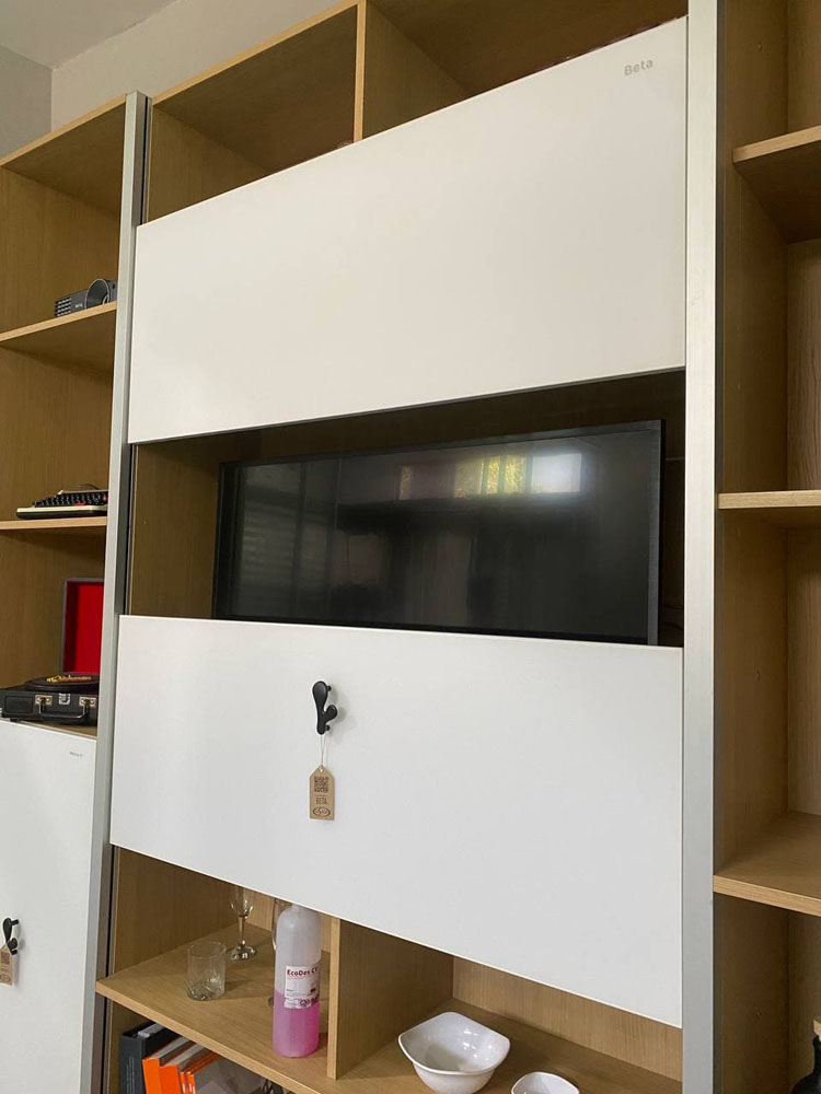 El sistema de puertas corredizas verticales Beta® by TernoScorrevoli es un conjunto de herrajes diseñado para fabricar puertas de muebles, ofreciendo una solución sincronizada para frentes de madera o marcos de aluminio (bajo pedido). Este herraje es ideal para puertas de hasta 15 kg cada una.