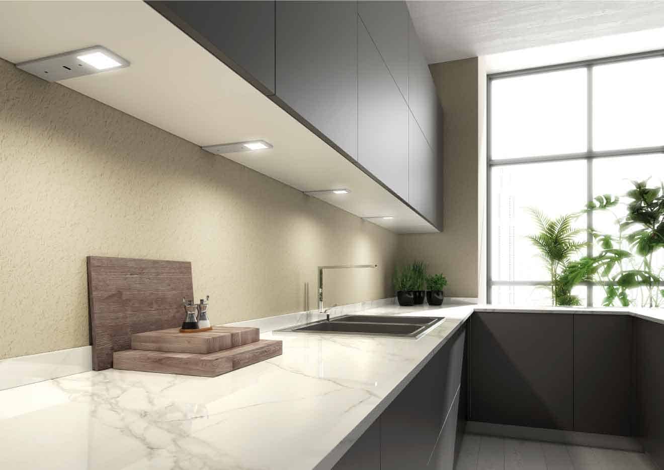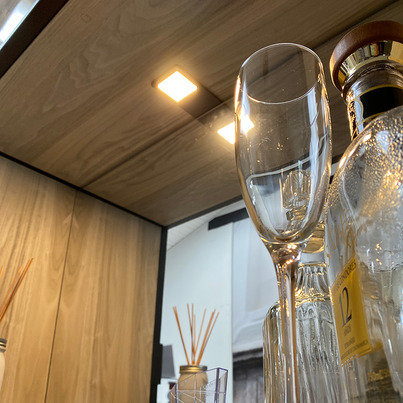 La lámpara LED para muebles POLAR es una luminaria de sobreponer, que ofrece una luz amplia y difusa, en combinación con un sistema DIMMER para regular la intensidad de la luz.