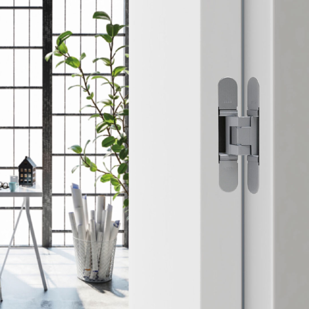 Las bisagras invisibles 1430 proporcionan elegancia y diseño minimalista en la construcción de puertas abatibles, ya que, su punto de sujeción es casi imperceptible. Además, se diferencian gracias al poco espacio que ocupan, dentro del marco.
