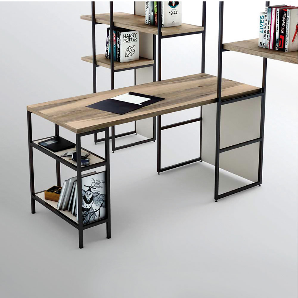 Diseñada con un concepto de estructuras cúbicas, esta estantería combina funcionalidad y diseño contemporáneo. El sistema incluye perfiles de estructura, elementos de sujeción y regulación, lo que permite una fácil personalización y adaptación a diversas necesidades.