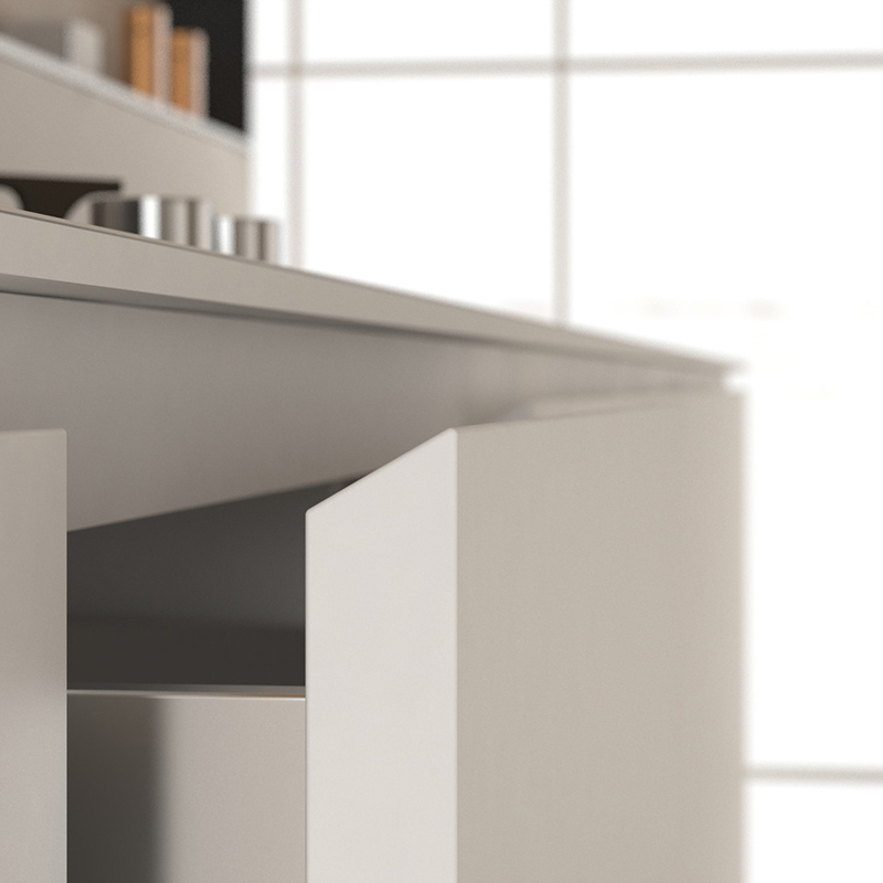 Adicionalmente, las rayaduras superficiales pueden ser reparadas con facilidad sin perder el color original, debido a que el material tiene el mismo color en toda su profundidad. Además, el canto en ABS tiene el mismo color y acabado del tablero, y como complemento ofrecemos las láminas de acrílico para los frentes de los muebles.
