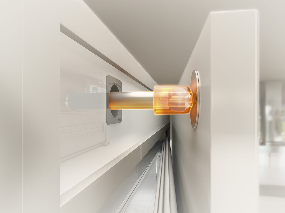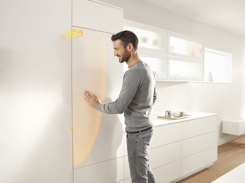 El sistema electrónico de apertura asistida, Servo-Drive Flex, es ideal para refrigeradores y neveras panelables, para abrir sus puertas de sin necesidad de usar tiradores o manijas. Al igual que su aplicación, en cajones y Aventos, éste proporciona un cierre suave y seguro.